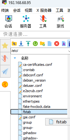 - 再去盒子系统里找到/etc/fstab文件直接编辑