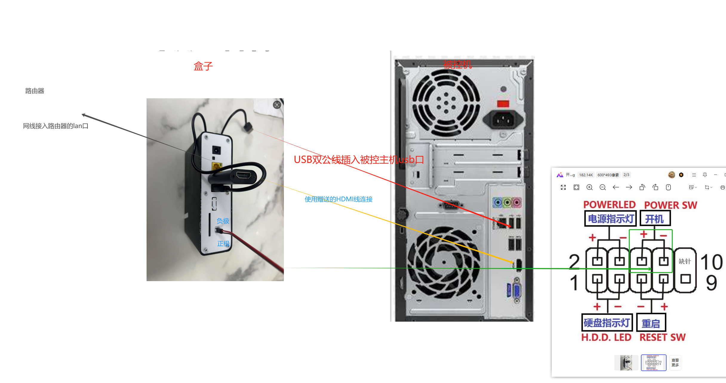 - 盒子、usb双公线、电脑、取卡针(捅菊花用)、电源