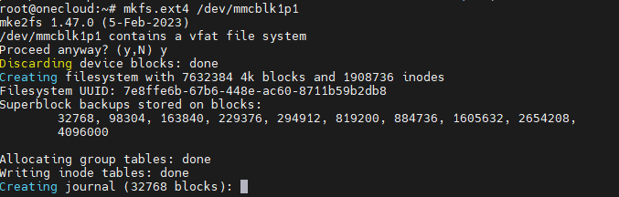 mkfs.ext4 /dev/mmcblk1p1