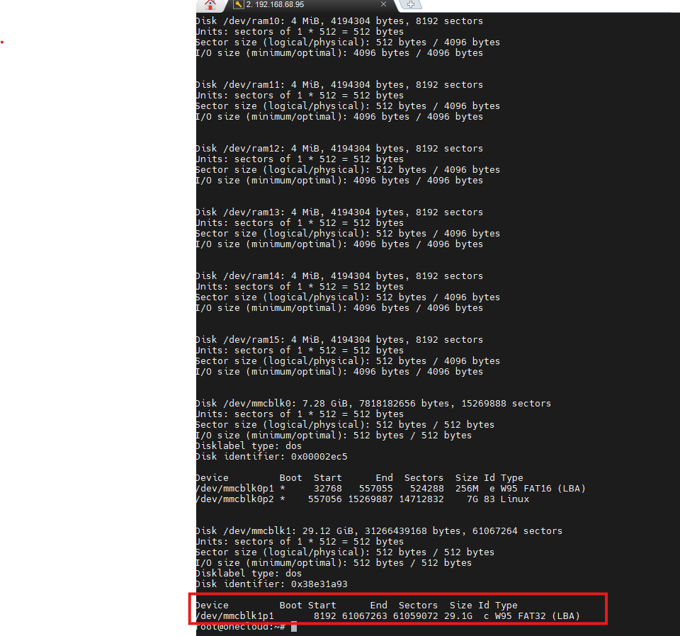命令查看目前设备接入的储存记录,对应找跟你sd卡容量相近的盘符,比如我的是mmcblk1p1